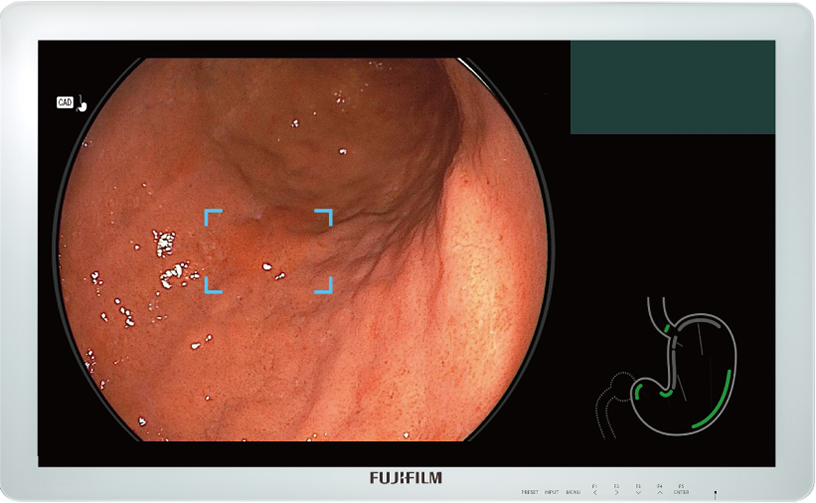 Graphical user interface of CAD EYE is integrated and displayed together with an endoscopic image on a single monitor. It does not interfere with clinical images and minimizes required eye movement.
