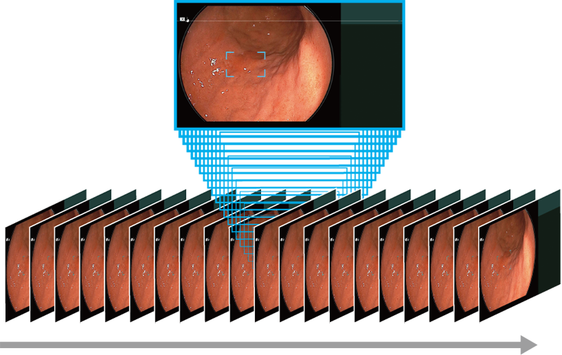 High speed processing technology enables the analysis of the endoscopic video and the display of the detection result in real-time without freezing.