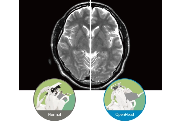 “OpenHead Mode“ which allows imaging without covering the anterior side of the coil over the patient’s face is equipped. By not obstructing the patient’s field of vision, this mode helps reduce the psychological stress associated with the imaging process.