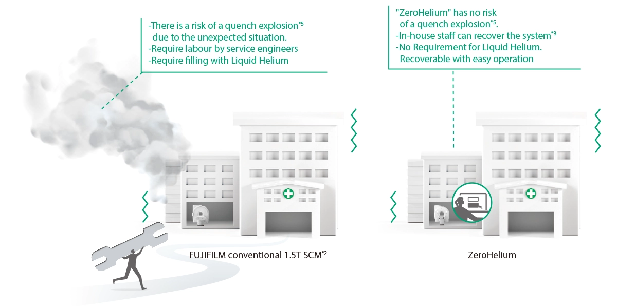 “ZeroHelium” allows in-house staff *3 to ramp down and up the magnet in an emergency case*4.