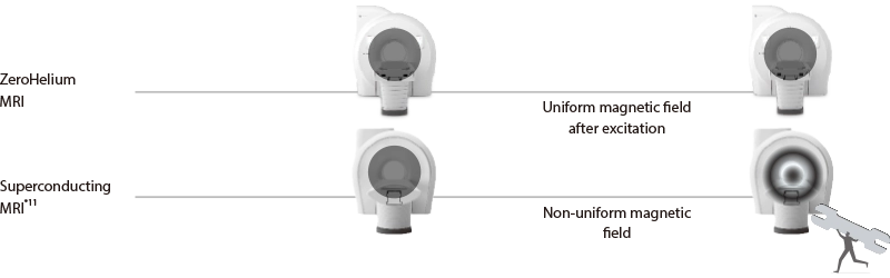 ZeroHelium technology cools the magnet without using liquid helium and significantly reduces recovery time and costs due to accidents and power failures from natural disasters.