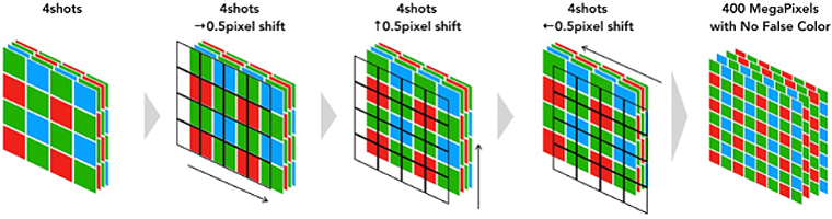 Principle behind the Pixel Shift Multi-Shot (Shifting image sensor)