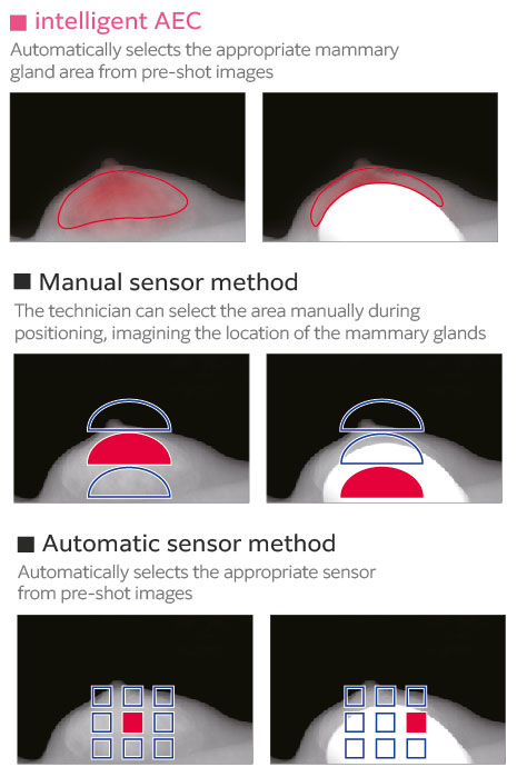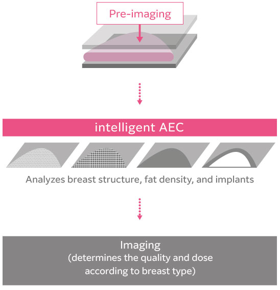 Intelligent AEC - Adjusts the x-ray dose according to breast type
