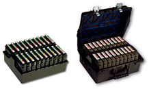 The DATA TAPE COURIER PROFESSIONAL CASE, a new media container made of industrial-strength, lightweight, high-density polyethylene. The case features heavy-duty lockable compression clasps and soft interior contact points that create a durable seal. It can be used to transport data cartridges from one location to another or to off-site storage, in fulfillment of your company's commercial, proprietary and regulatory requirements. The DATA TAPE COURIER PROFESSIONAL CASE is certified and approved by FUJIFILM to protect LTO cartridges and enterprise cartridges.