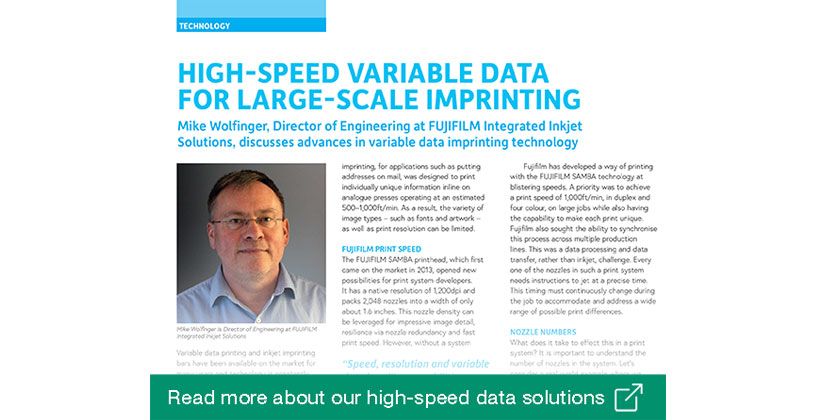 With two widths and a familiar controller interface, print providers can simply swap out legacy continuous inkjet printbars and swap in Fujifilm’s modern drop-on-demand inkjet printbars with minimal operational changes.