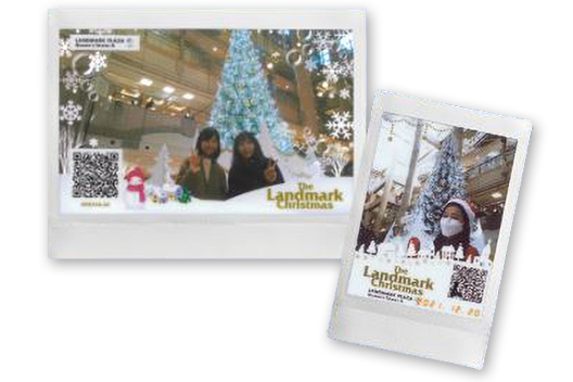 At this event, visitors had their photos taken with (what product was used )in front of the Christmas tree at the Landmark Plaza, Yokohama.