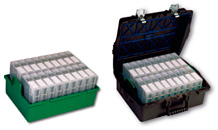 The DATA TAPE COURIER PROFESSIONAL CASE, a new media container made of industrial-strength, lightweight, high-density polyethylene. The case features heavy-duty lockable compression clasps and soft interior contact points that create a durable seal. It can be used to transport data cartridges from one location to another or to off-site storage, in fulfillment of your company's commercial, proprietary and regulatory requirements. The DATA TAPE COURIER PROFESSIONAL CASE is certified and approved by FUJIFILM to protect LTO cartridges and enterprise cartridges.