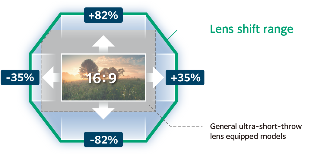 Equipped with Best-in-Class*5 Lens Shift of 82% Vertical and 35% Horizontal