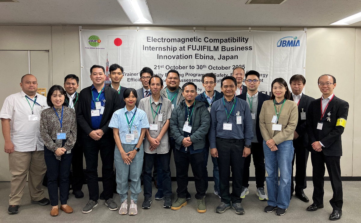 2025年10月21日(火)~30日(木)、富士フイルムビジネスイノベーション国際認証センターで「EMCインターンシップ」が開催されました。このインターンシップは、日・ASEAN統合基金(JAIF)の支援のもと、一般社団法人 ビジネス機械・情報システム産業協会(JBMIA)が実施する「マルチメディア機器の安全性、電磁両立性(Electromagnetic Compatibility(EMC))およびエネルギー効率の適合性評価のためのトレーナー能力開発プログラム」の一環として行われたものです。
