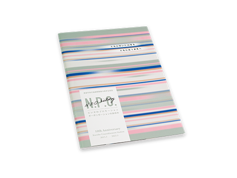 作品説明:北陸新幹線・黒部宇奈月温泉駅の開業10周年を記念して発行された記念誌です。全ページにわたり、シルバートナーとプロセスカラーを絶妙に配合することで、繊細で深みのあるニュアンスを表現しています。また、長尺用紙を使用した表紙には新幹線のビジュアルが連続的に描かれており、製本後もその連続性を損なわない高度な画像処理と多彩な工夫が施された印刷設計が特徴です。