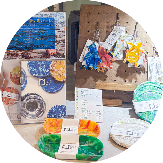 日本各地に漂着した海洋プラスチックゴミを材料に、製品を作っています。