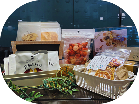 市場に出荷できなかった規格外の野菜・果物を使用し、ドリンクや軽食、スナックを提供しています。