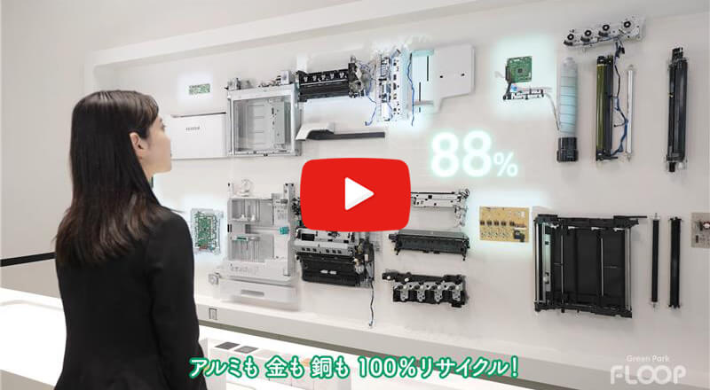 複合機には約15,000もの部品が使われ、鉄やアルミ、銅、ガラスなどの素材があります。どんな部品と素材があるか見てみよう。