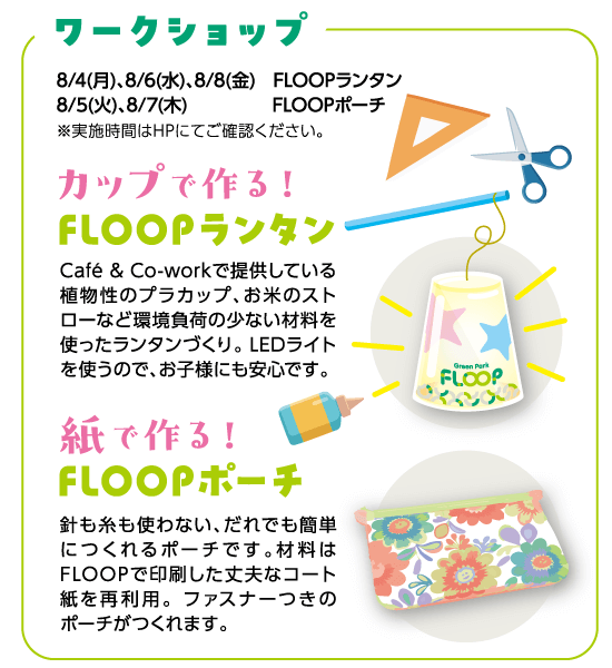 | 14:30 | [ワークショップ] FLOOPランタン |