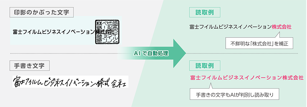 当社は、複合機のスキャンなどを通じたデータの取り込み、データ抽出・出力までの一連の業務をサポートする「FUJIFILM IWpro」に、AI技術を活用した新機能を組み合わせることで、幅広い業務プロセスのデジタル化・効率化を支援し、お客様のDX推進に貢献してまいります。