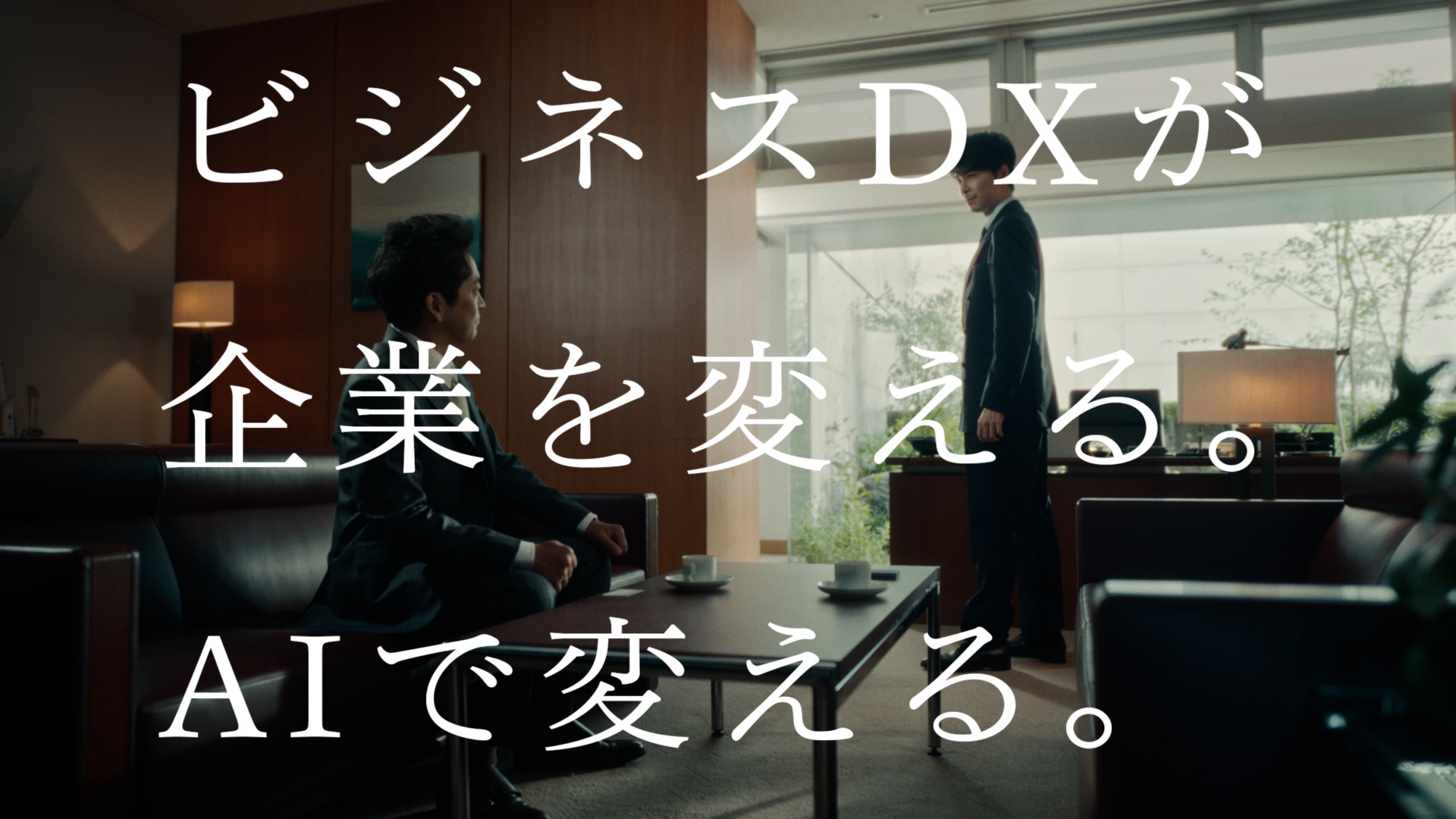 TVCM「ビジネスDX」の新シリーズは「ビジネスDX モノローグ」篇、「ビジネスDX ドラマ」篇の二作品で構成されており、キャッチコピーは「ビジネスDXが、企業を変える。AIで変える」。