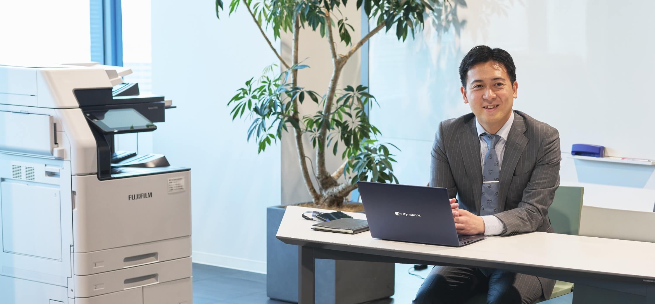 現在はアカウント営業として2つの企業グループを担当しています。お客様のさまざまな要望にお応えしながら、その中でお客様の抱える課題を正しく把握し、解決するための提案も主体的に行っています。当社の強みの一つは複合機を中心としたオフィス機器を通じてお客様の業務に深く入り込むことができる点にありますが、お客様の業務も複雑化する中、単体の製品だけでは課題を解決できません。そこで私たちは自社製品のみならず、他社製品も柔軟に組み合わせてお客様の課題解決に取り組んでいます。オフィス家具から基幹システムまで、さまざまなパートナーと協力する事で、私たちに応えられないお困りごとなない、と考えています。