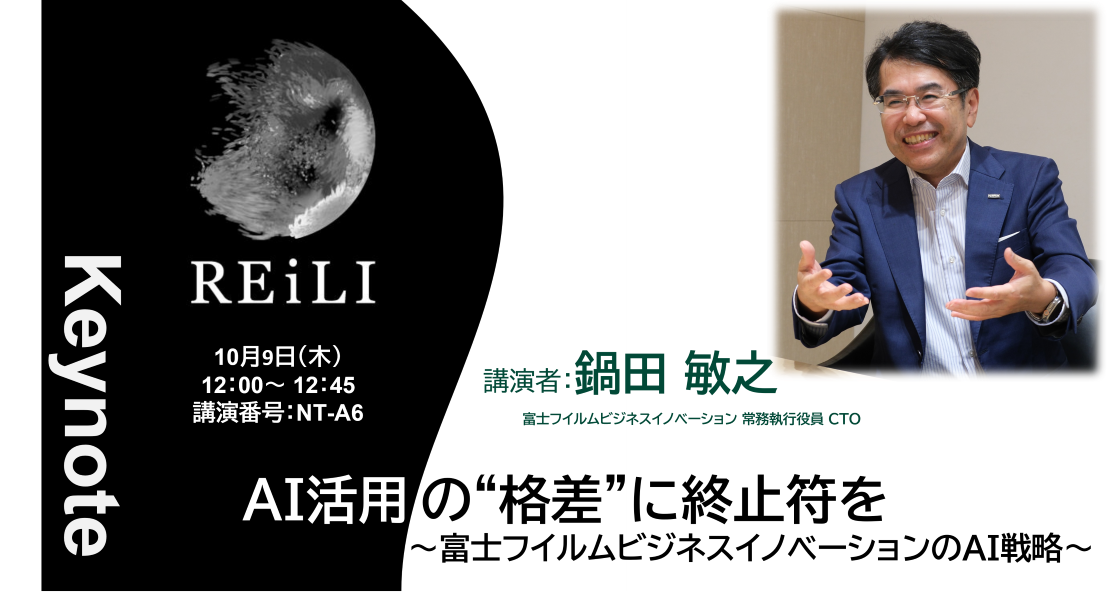 富士フイルムビジネスイノベーション株式会社(本社:東京都港区、代表取締役社長・CEO:浜 直樹)は、2025年10月8日(水)から10日(金)までの3日間、幕張メッセで開催される「AI・人工知能EXPO 2025秋」に出展します。 本展示では、「ヒトとAIの共創で未来の働き方を実現」をテーマに、当社が展開するAI技術ブランド「REiLI(レイリ)」を中心としたAIソリューションや、業務現場でのAI活用事例などを紹介します。また、「AI活用の”格差”に終止符を」をテーマに当社の常務執行役員 CTO 鍋田 敏之による特別講演を実施します。