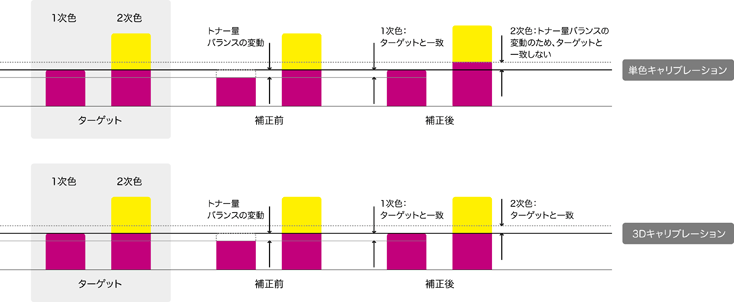 図2:キャリブレーション方法によるトナー補正対象の違い