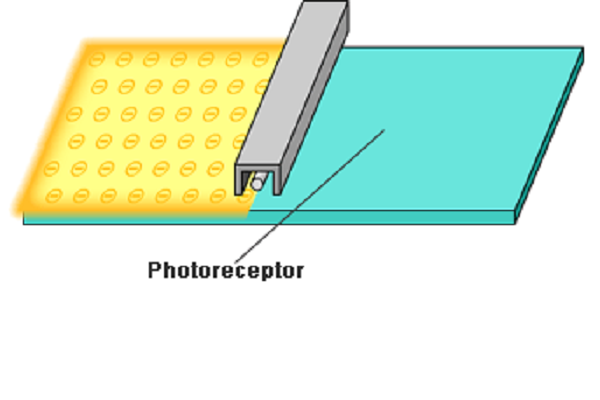 - * a semiconductor which generate positive charges when exposed to light.Xerography uses this characteristic to perform printing.The above photoreceptor in plate form is provided for the purpose of illustration.Actual color multifunction machines use cylindrical photoreceptors