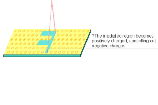 A mirror image of the original document image provided by negative charges is formed on the photoreceptor.