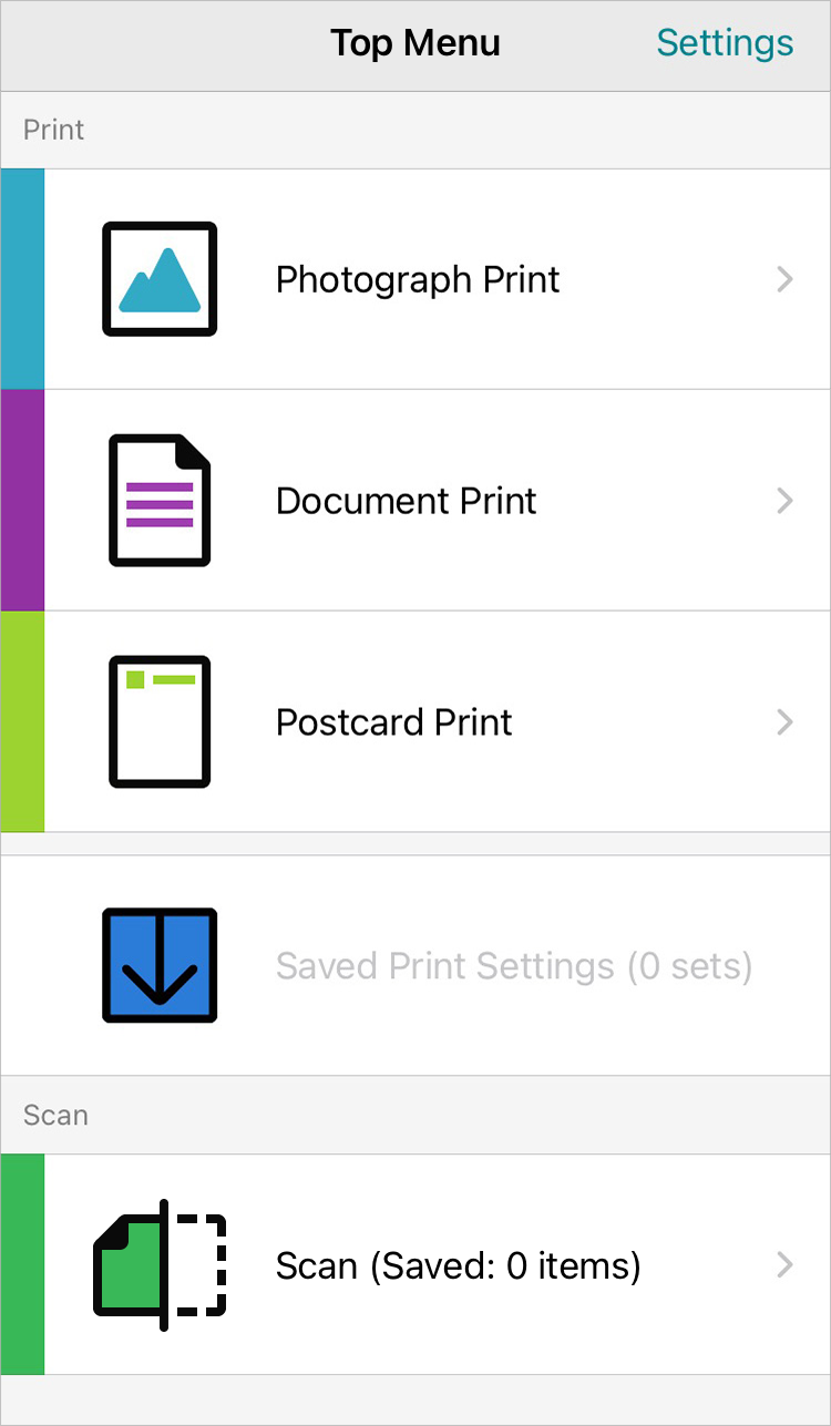 If printing later, tap "Saved Print Settings" in the Top menu.