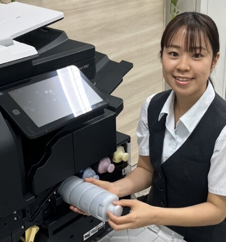 複合機、プリンターなどの画像形成材料の開発、製造拠点です。これまでにない形成材料や、環境に配慮した各種材料の開発を目指し、業務に取り組んでいます。