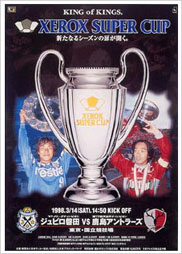 それぞれJリーグ、天皇杯に初優勝したジュビロ磐田、鹿島アントラーズが対戦。FIFAワールドカップ™・フランス大会を控えているということもあり、日本代表クラスの選手を多く抱える両チームの攻防に、ファンは熱心に見入った。先制したのはジュビロで、相手ペナルティーエリア内でボールを奪った藤田が決めた。だが、厳しいチェックに苦しんでいたアントラーズも、右サイドを抜け出した名良橋から柳沢につないで同点とする。後半も互いに譲らぬ展開となったが、終盤はジュビロが立て続けにアントラーズのゴールを強襲。これをGK古川の好守でしのいだアントラーズは終了1分前、攻撃参加した相馬が左足で強烈に決め、逆転でこの大会の連覇を成し遂げた。