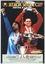 2000年という記念すべき年のゼロックススーパーカップは、ジュビロ磐田と名古屋グランパスエイトという東海勢対決。ともに日本代表経験のあるスター選手をそろえ、国内の本格的なシーズンの幕開けを告げるにふさわしいカードが実現した。立ち上がり、やや押し込まれたグランパスは、4バックから3バックへの変更で守備を強化。これでペースを取り戻し、後半に入ると平野のクロスから新加入のホミルドが先制した。対するジュビロも川口を投入し、3トップで反撃態勢。73分には、右サイドを突破した高原からのボールを、福西が決めて同点とした。PK戦で勝利はジュビロのものとなったが、非常に密度の濃い内容で、雨の中で足を運んでくれたファンを十分に堪能させた。