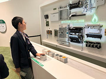 また、環境技術(CO2削減の取り組み)の展示では、技術を模した展示を積極的に体験し、技術の面白さや進化の過程をお友達と一緒に学んでいる様子がとても印象的でした。