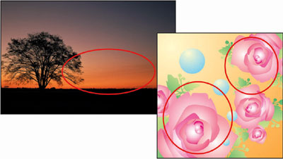 図2:HQデジタルスクリーンMACS技術によりグラデーションやハーフトーンの再現性が向上(○印部分)