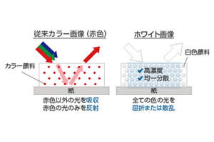 プロダクションプリンターにおける印刷デザインの幅を拡張し、多彩なメディアへの印字を可能にすることで、出力物の付加価値を高めるホワイトトナーの活用が求められています。ホワイトトナーには、透明フィルムや色紙への白単色プリントだけでなく、カラー画像を印字する際の下敷層を形成できる機能が重要となります。