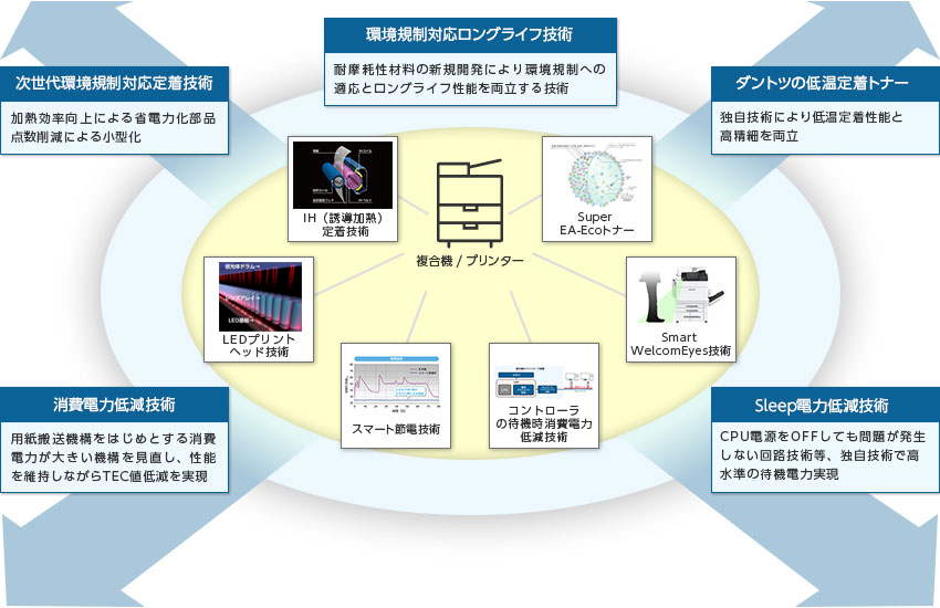 富士フイルムビジネスイノベーションは、お客様の利便性と環境性能を合わせ持った技術・商品・サービスを追求しています。 お客様の節電を支援する、複合機/プリンターの省エネ性能とお客様の利便性を両立する技術についてご紹介します。
