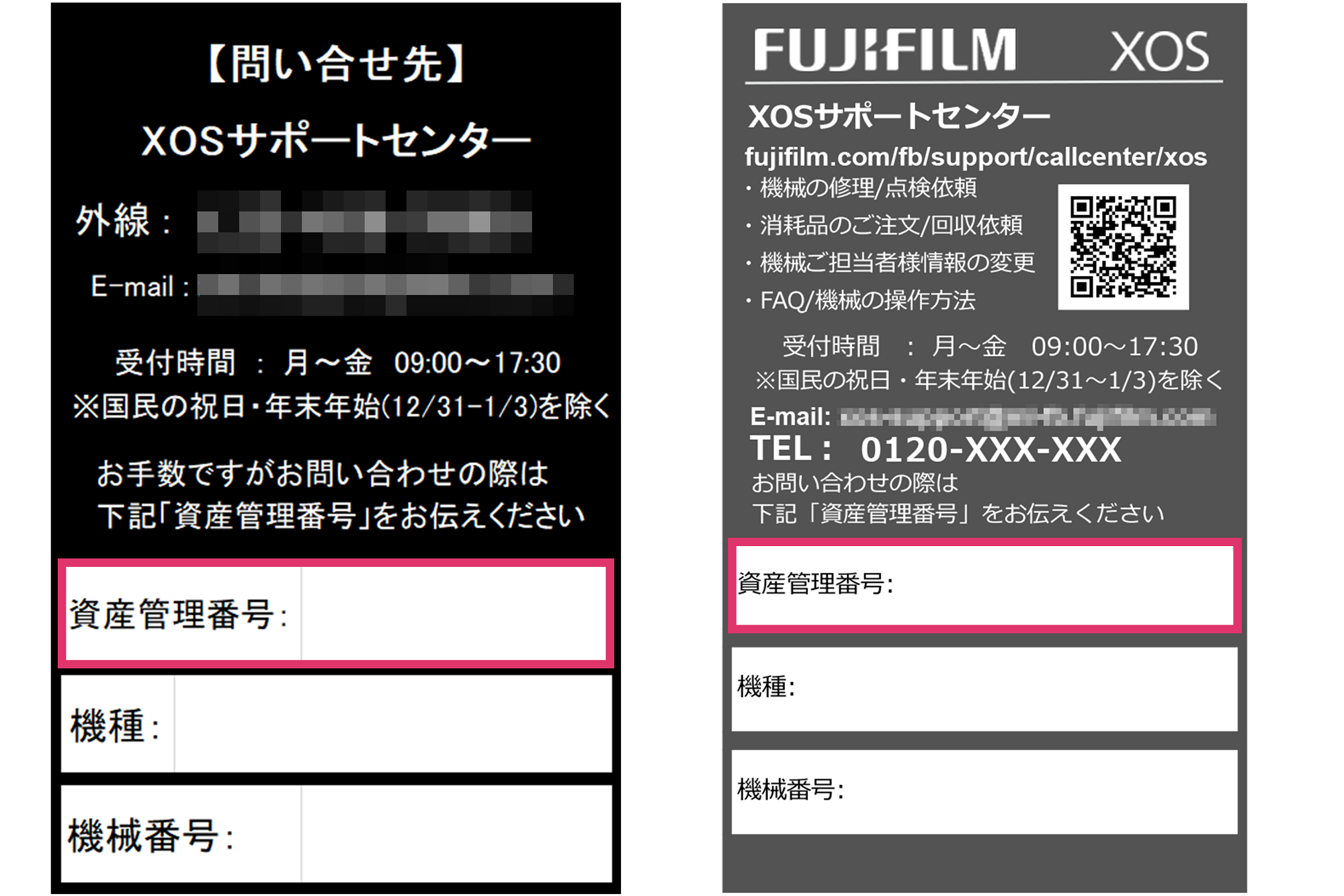 トナーのご注文(XOS契約のお客様) 現在 Start 入力内容のご確認 完了 は必須入力項目です。 入力前にご一読ください × Information message XOS契約のお客様は、本Webフォームからトナーのご注文が可能です。 XOS契約に登録されている登録先にお届けいたします。 出荷日は通常ご注文いただいた日から3営業日(土・日・祝日および弊社指定休業日を除く)を目安としておりますが 商品や在庫状況によりそれ以上かかる場合がございます。 XOS契約をご利用いただいていない方はこちらからご依頼ください。 お問い合わせいただく際には、以下の点にご注意ください。 ・当社より送信するお客さまへのE-mailはお客さま個人あてにお送りするもので、転載・転送はお断りいたします。 ・回答期日のご指定や至急の回答のご要望にはお応えできない場合がございます。 ・本お問い合わせページは、富士フイルムビジネスイノベーション株式会社が管理・運営しております。 ※半角カナ、機種依存文字はご使用にならないようお願いいたします。文字化けの原因となります。 資産管理番号(半角英数) 資産管理番号は機械本体に貼付されている資産管理タグに記載されています。 例)XXX-12345 お名前 姓 名 E-mailアドレス (確認用)もう一度ご入力ください。 E-mailアドレスの確認 E-mailアドレスを正しく入力いただかないと、お返事できない場合があります。 「入力内容を確認する」ボタンを押したあと、確認画面にてご自分のE-mailアドレスを再度ご確認ください。 TEL ※日中にご連絡のつく電話番号を入れてください。 ご注文内容必要な本数を選択してください ブラック (K) 0123 シアン (C) 0123 マゼンタ (M) 0123 イエロー (Y) 0123 トナー回収ボトル 0123 × ステータスメッセージ 使用済み消耗品の回収 ご注文の配送時に、使用済み消耗品の回収がある場合は配送員にお渡しください。 ※回収のみをご希望の場合には使用済み消耗品回収のご注文(XOS契約のお客様)からお申し込みください × Information message 個人情報の利用目的および取り扱いについて 富士フイルムビジネスイノベーション株式会社(以下、弊社といいます)が、本登録でご提供いただいた個人情報※を利用する目的は次のとおりです。 1.ご本人からのお問い合わせ・ご依頼に対応するため 2.商品・サービスの品質や接客対応の改善のため(この場合には、ご本人を識別できない状態(統計資料等)で利用いたします) 3.弊社商品・サービスや接客対応に対するご意見やご感想をおうかがいするため 4.ご本人からお問い合わせ窓口へのお申し出内容を正確に記録するため 5.お問い合わせ・ご依頼内容を記録することで、再度お問い合わせ窓口をご利用いただく場合に、正確かつ迅速なサービスを提供するため 6.ご本人からのご希望に応じて弊社が提供するサービスの利用者として登録するため 上記以外の目的で利用する場合は、事前にお知らせし同意を得た上で利用します。 ご提供いただいた個人情報は、上記のほか弊社プライバシーポリシーにもとづき適切に取り扱います。 個人情報の開示・訂正・利用停止については「個人情報保護法」に基づくご請求方法についてをお読みください。 ※「個人情報」とは、弊社が事業のために収集する、氏名、年齢、生年月日、性別、住所、電話番号、メールアドレス、勤務先、クレジットカード番号等の個人に関する情報であって、この内の一つまたは複数の組合せにより特定の個人を識別することができるものをいいます。 同意する