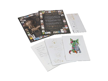 作品説明:障がいを持つ方々が多様な個性や能力を活かして活動できるような取り組みを実施したいとの考えのもと、アールブリュット作品(障がい者アート)を用いて、企業ノベルティ、個展のDM等を制作。特殊色を施し、竹紙や板紙等の用紙特性を生かすことで、個性的な作品がもつ表現の幅をさらに広げた。