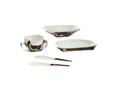 作品説明:A4サイズの平らな紙を折り畳んで組み立てる紙製の食器。100人分の紙食器を、組み立て前に積み重ねた厚さはわずか45mm。耐熱・耐水・耐油性に優れながらも2年で自然分解される紙を使用。世界中で自然災害などから避難を余儀なくされている被災者たち対する支援グッズとして制作。2024年1月、石川県で発生した能登半島地震の際には、被災地へ10,000シートを支援物資として寄贈。
