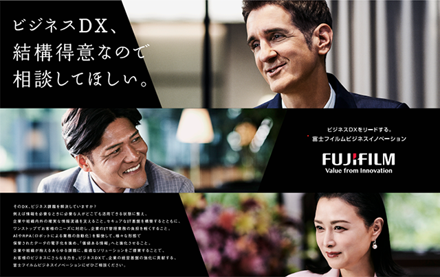 TVCM「ビジネスDX」の第二弾となる新シリーズでは、「ビジネスDX 大久保部長」篇、「ビジネスDX 国生専務」篇、「ビジネスDX 二人」篇の3作品構成とし、最先端のITやAIを駆使したソリューション・サービスで企業のDX推進を支え、情報流通の促進や業務プロセスの効率化、意思決定の迅速化などを実現することを訴求。富士フイルムビジネスイノベーションが、お客様のビジネスの流れを変え、強化することを伝えます。