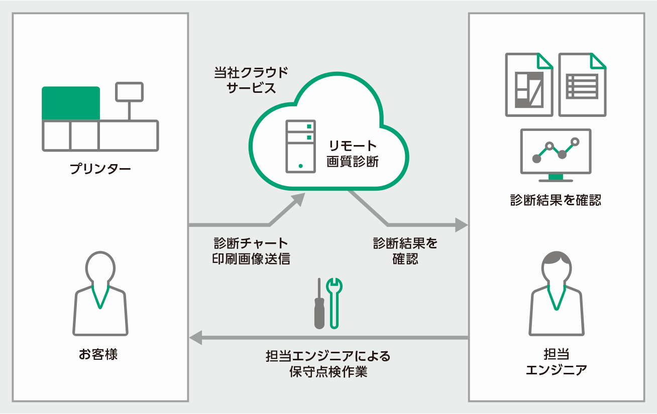 お客様機械の出力画質品質をリモートから診断することで安定稼働に貢献します。