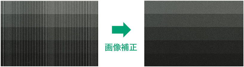 (右)画像補正を行うことで、スジ欠陥が見えなくなる