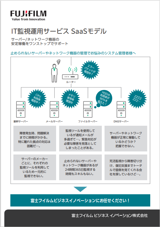 企業のライフラインであるサーバやネットワーク機器の安定稼働(業務継続)を支援するための機能をオールインワンで提供するサービスです