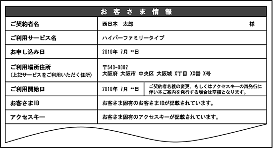 - * もし「開通のご案内」を紛失されている場合は、再発行を受けることができます。NTT西日本の窓口までお問い合わせください。