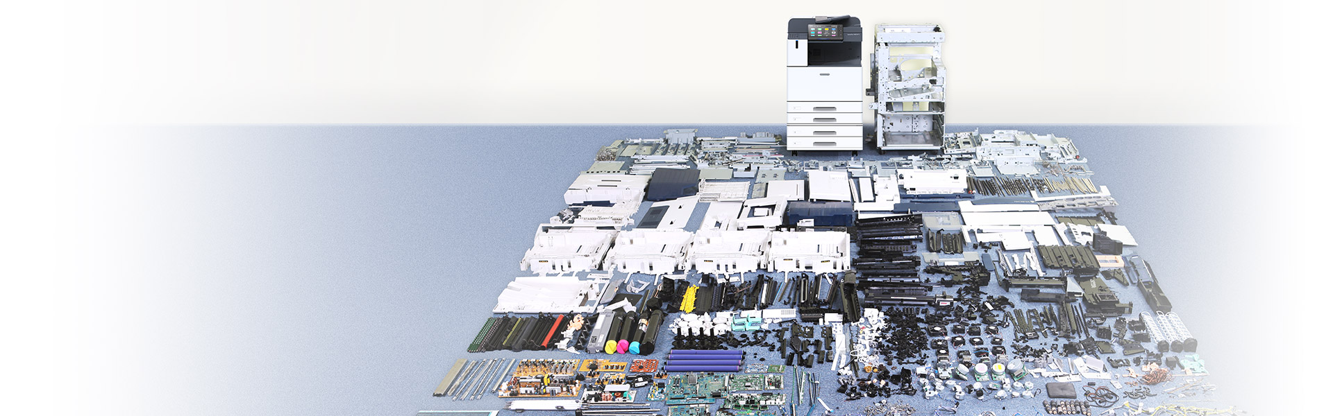 同年以降、回収した使用済み商品から取り出した部品を再生技術によりリユース活用し、資源として循環させています。使用済み複合機やトナーカートリッジ、スペアパーツ等のリユースや、再生プラスチック、再生鉄等の再生材活用を拡大・強化していきます。