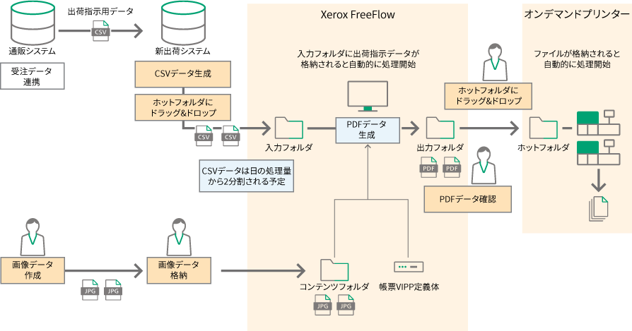 西村様: 導入したシステムは、納品明細書、払込書、挨拶文、商品カタログ、活用レシピ、企業情報パンフ、お客様の声、健康情報誌など、さまざまな種類の同梱物をそれぞれのお客様に適した掲載内容でA3サイズ用紙の両面に集約化し、印刷するものです。導入にあたっては、実際にこのシステムを運用している企業を訪問し、お客様ごとに内容を変えた納品明細書をお届けする仕組みへの運用を拝見して参考にしました。