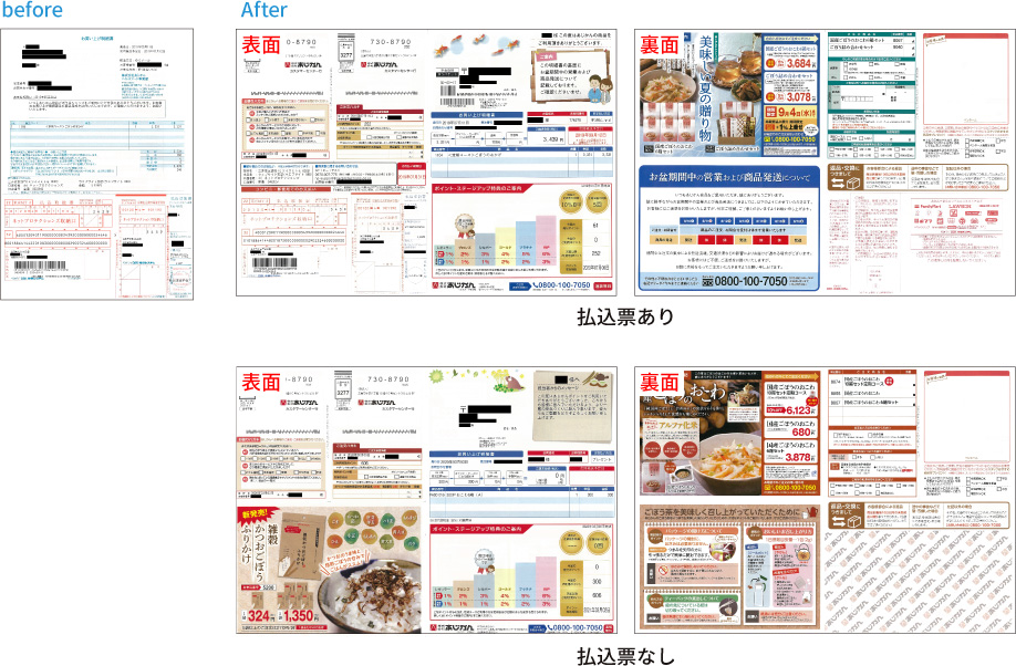 もともと高齢者のお客様からのハガキ注文は多かったのですが、全体的なハガキ注文の数も増えています。明細書とコンテンツ、注文用のハガキなどを一体化することで、ハガキによる申し込みが1.5倍から2倍に増えました。