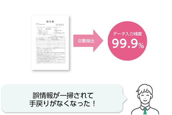 請求書の金額や日付、口座情報などを99.9%以上の精度でデータ化します。