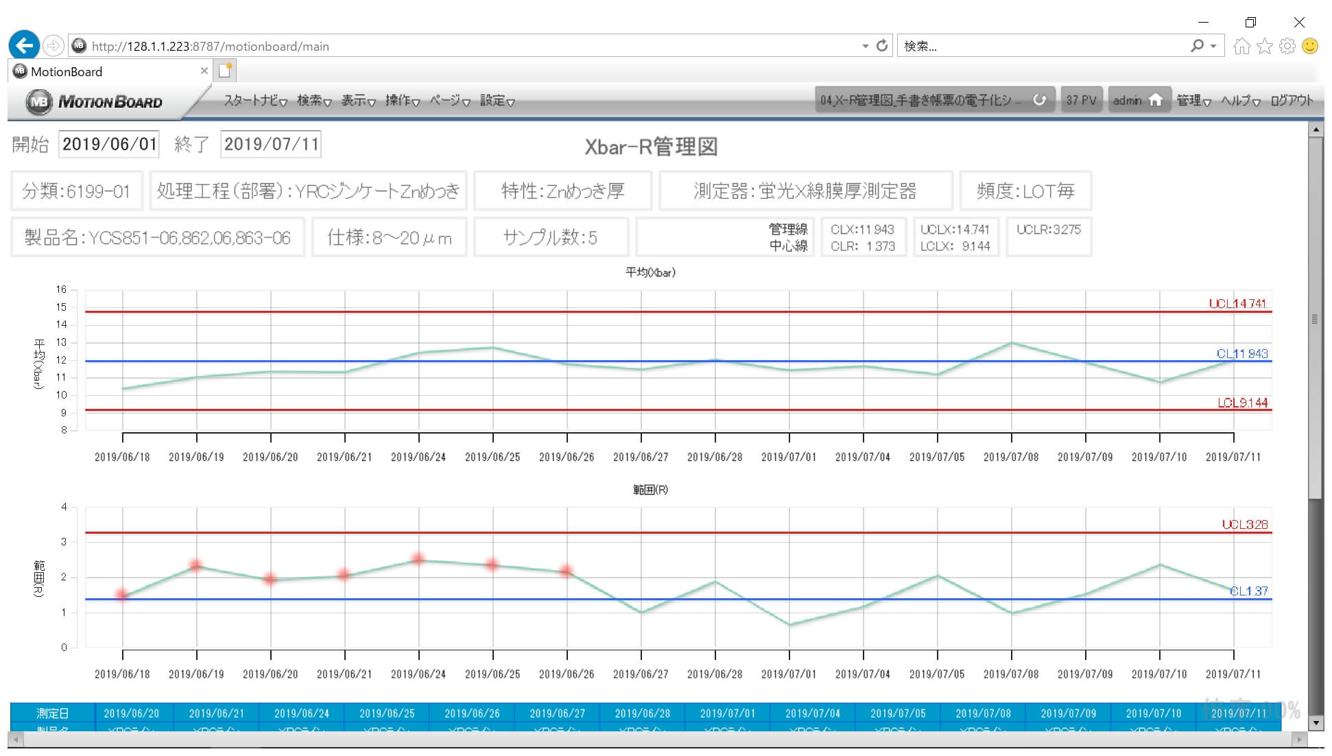 管理図やチャートの表示内容を変更したい場合は、ノンプログラミングで社内完結できます。その場ですぐに変更できるため見やすい形に調整することもできます。