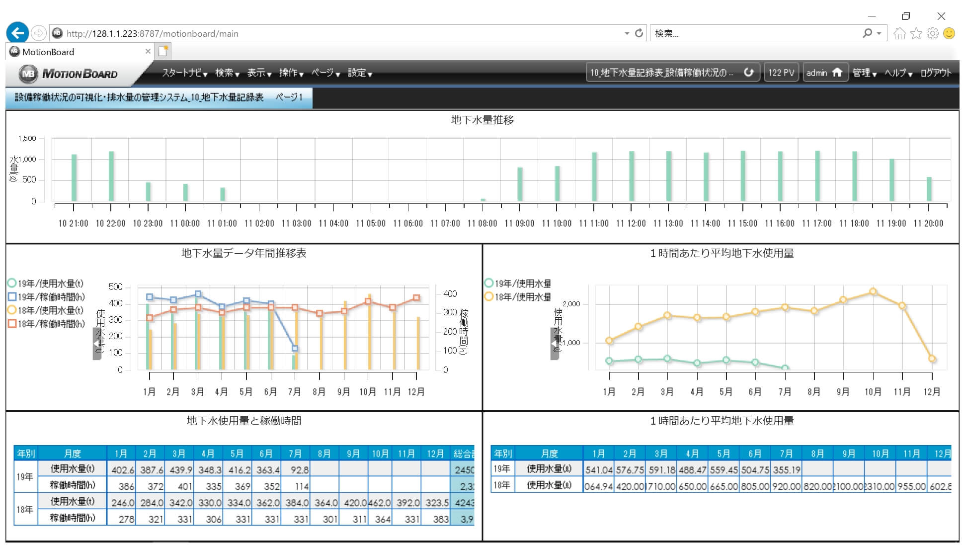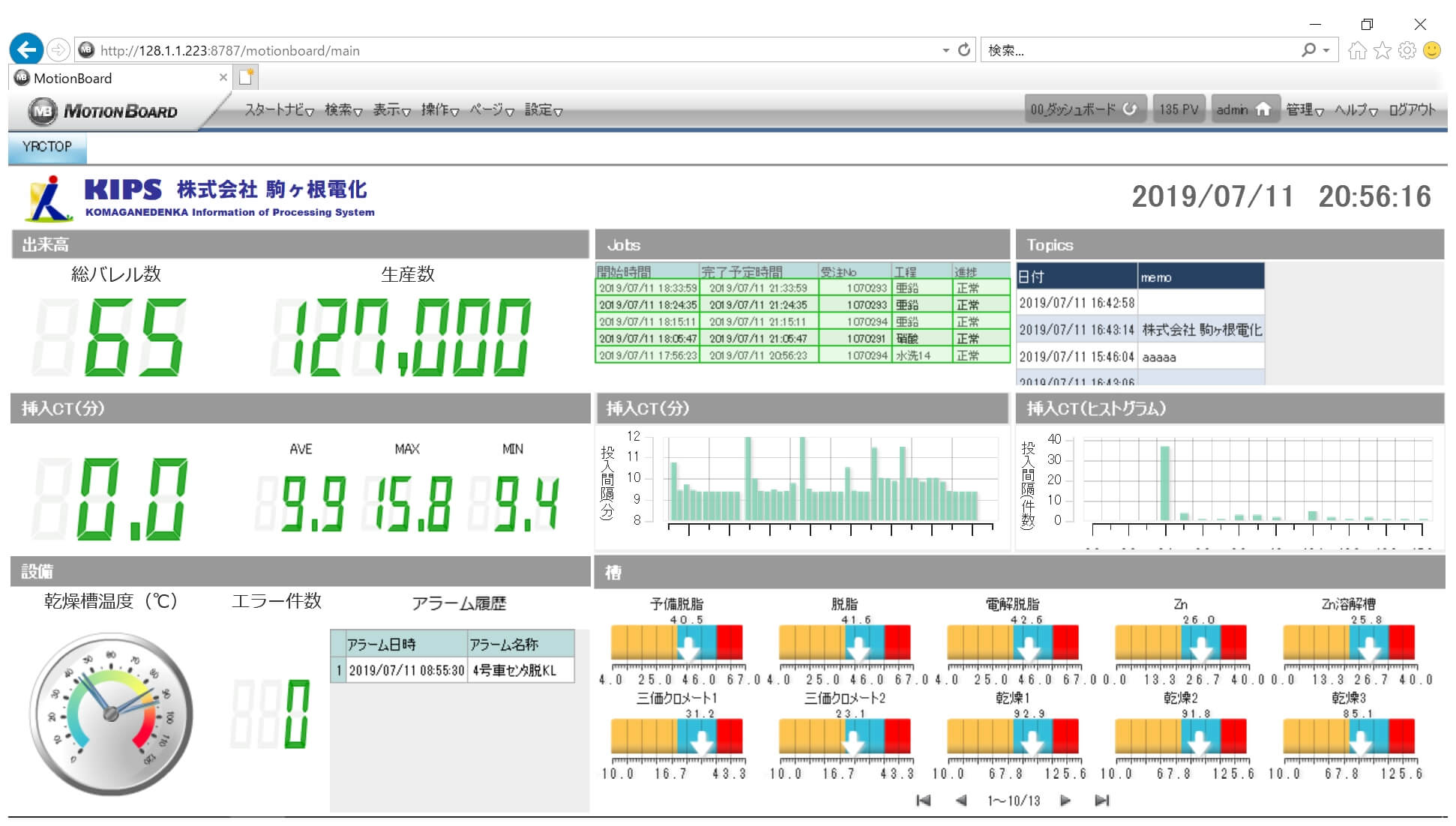 「MotionBoard」では、Dr.Sumから必要なデータを抜き取り、見やすい形で見える化します。そのため、例えば下記のようなイメージで、製造現場のKPIをディスプレイに表示させることができます。下記の例では、生産性(設備稼働率)、地下水量記録表、トレサビ(作業履歴)、XbarR管理図のようなKPIをMotionBoardで見える化した例です。さらに、ダッシュボードでは、様々なKPIをインデックス表示させ、見たいKPIがすぐに見れるようになっています。このように見たいKPIを見たい表現で自由に設計できるのがMotionBoardです。