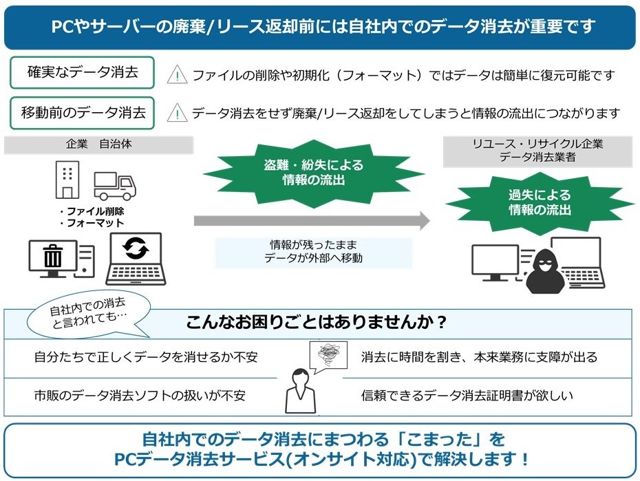 PCやサーバーの廃棄/リース返却前には、すべてのデータを確実に消去することが重要です。