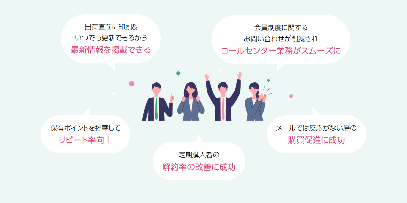 - 商品に同梱して送ることができるため、DMなどで必要な郵送料が不要