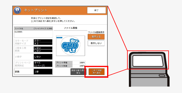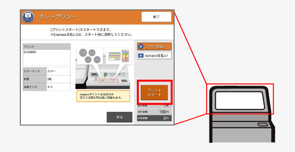 セブン-イレブンのマルチコピー機で「プリント」を選択。